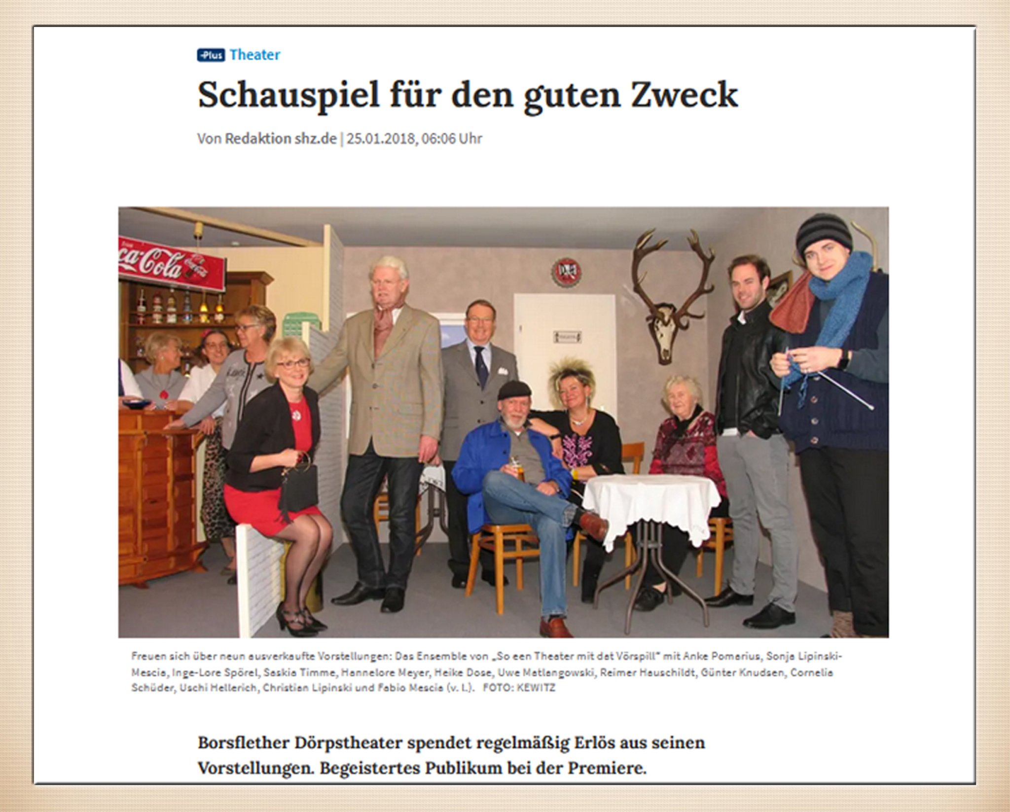 Borsflether Dörpstheater spendet regelmäßig Erlös aus seinen Vorstellungen. Begeistertes Publikum bei der Premiere. von shz.de 25. Januar 2018, 06:06 Uhr